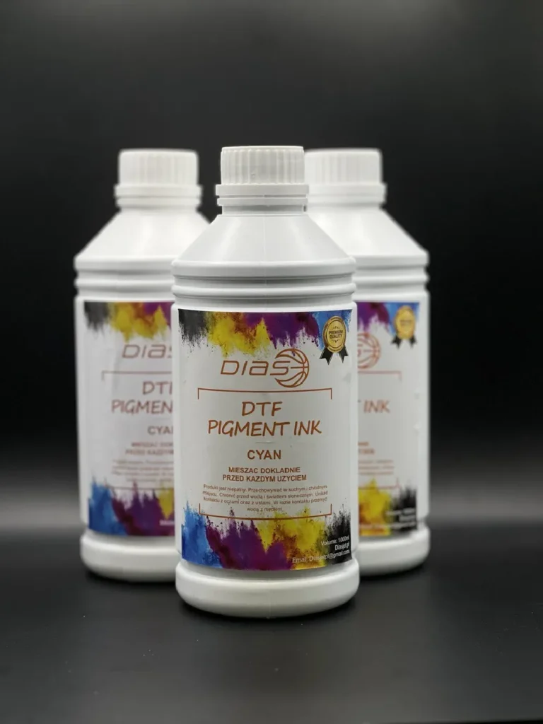 Premium atrament DTF Błękitny1000 ml do druku na odzieży. Intensywny kolor, wysoka odporność na pranie i promieniowanie UV. Kompatybilny z większością drukarek DTF . Bezpieczny, certyfikowany – idealny do zastosowań profesjonalnych.